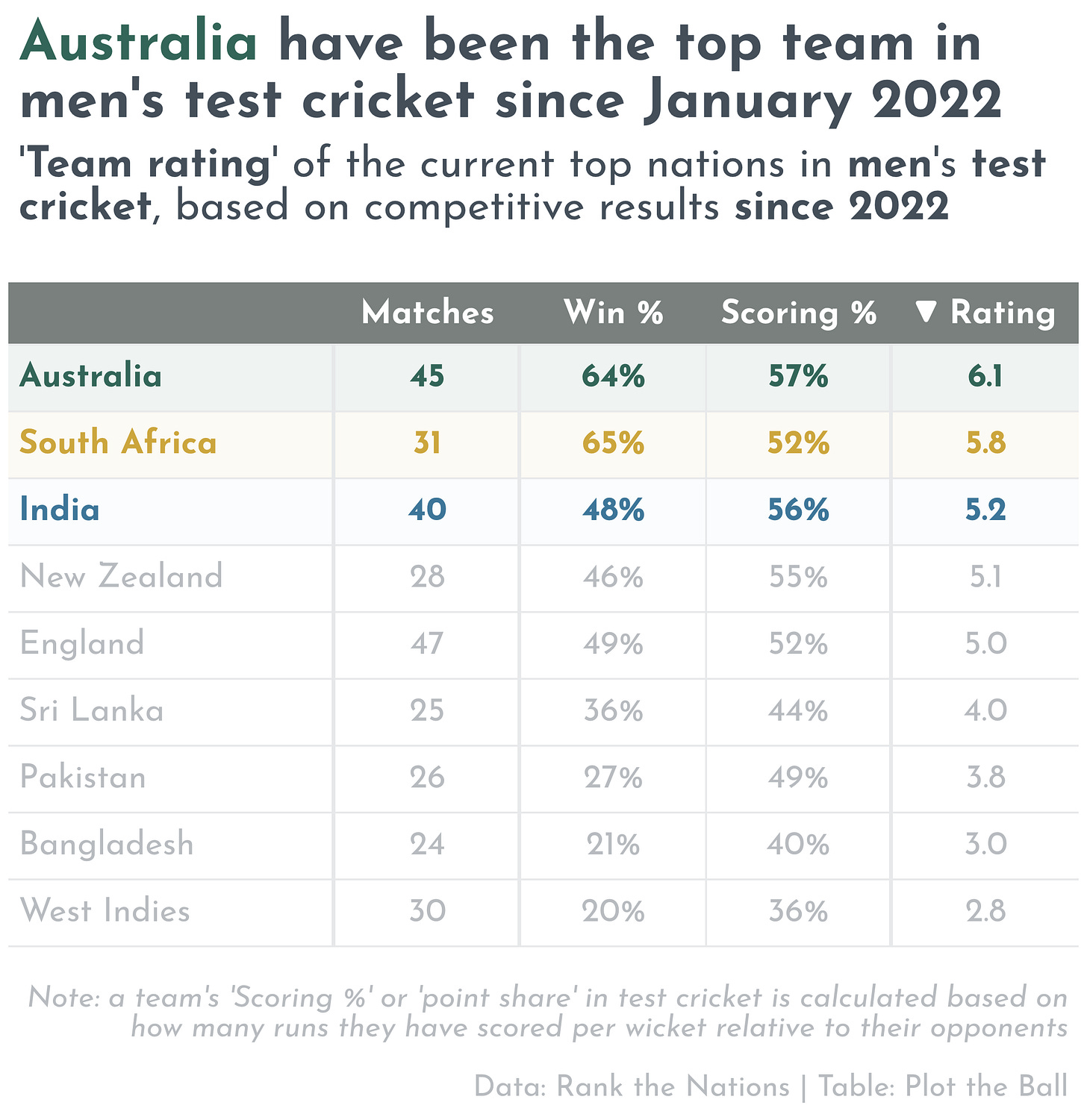 🇦🇺 Australia lead the first edition of the men’s test cricket ratings